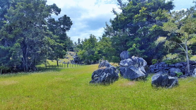 I find the history of this place, on the surface, to be intriguingly simple, much like the entrance. It's just here, always open and waiting to be discovered. There's no fanfare on arrival, it's not man made or even maintained to preserve it's existence, but as you descend down the steps there is this feeling of entering another world. An informal pathway curls through swaying wildflowers, meandering around ancient stands of native bush with enormous, gnarly creature-like trees that seem to inhabit small worlds in themselves. The rolling pasture leads through large rocky clusters, transporting thoughts to almost medieval moments in time.