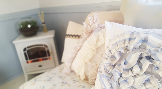 So to the final chapter in this short DIY renovation series, the story of how the eclectic shabby style came together in the Orchard Cottage guest house. This final part was by far the most fun of the stages, being all about the finishing touches and pulling the whole look together. Over the duration of the renovation, about four months in total I revelled in the days I had to wait for plaster or paint to dry so took to scouting through second hand shops. Little squeals of joy would escape as I spotted items on my wish list to furnish the Cottage. Imagination is a prerequisite on these trips, looking beyond the present colour, condition and coverings to visualize how, with a little re-work each piece could find a new home and be loved once more.