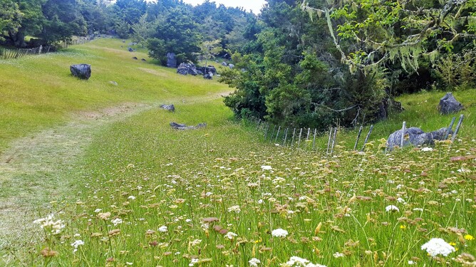 I find the history of this place, on the surface, to be intriguingly simple, much like the entrance. It's just here, always open and waiting to be discovered. There's no fanfare on arrival, it's not man made or even maintained to preserve it's existence, but as you descend down the steps there is this feeling of entering another world. An informal pathway curls through swaying wildflowers, meandering around ancient stands of native bush with enormous, gnarly creature-like trees that seem to inhabit small worlds in themselves. The rolling pasture leads through large rocky clusters, transporting thoughts to almost medieval moments in time.