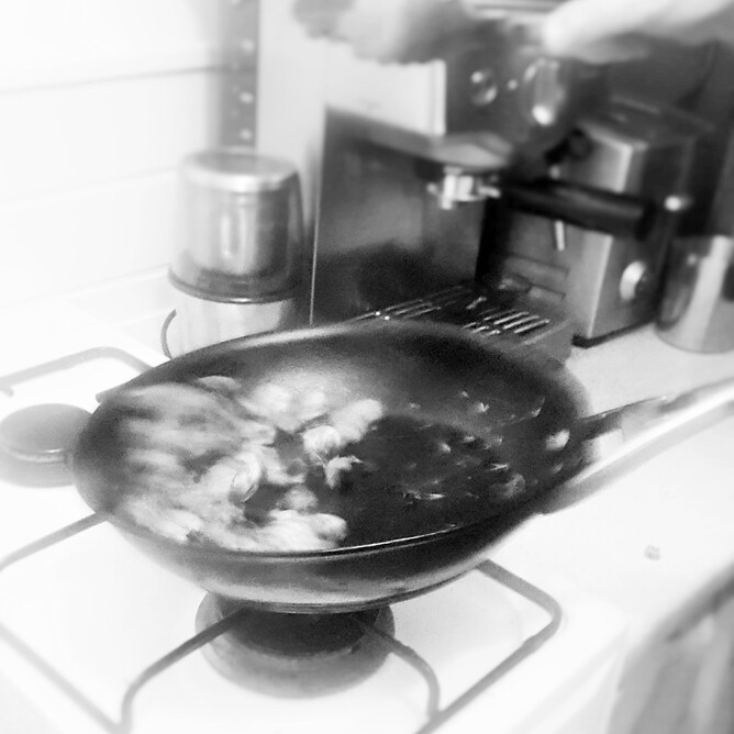 In a very hot frying pan with a splash of oil and a touch of butter, the Paua are seared quickly and then grated lemon zest, chopped parsley and sliced Black Garlic are thrown in for the last few seconds, just to coat and careful not to overcook.