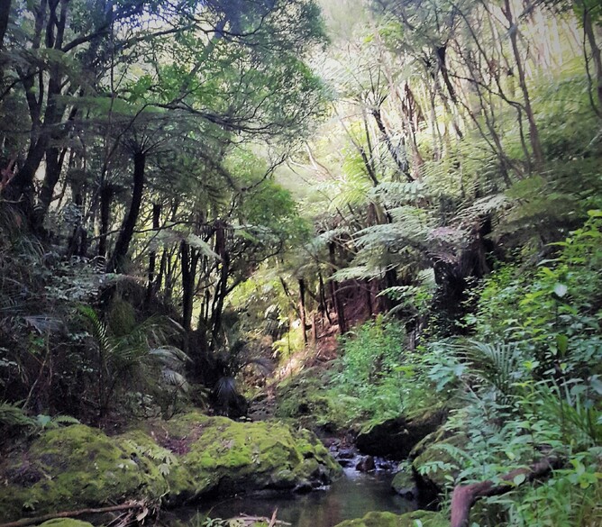 Breathing it all in I'm still a bit disbelieving that this is our back yard. Here, there are no lawns to be mowed, no weeding, pruning or landscaping requirements. Mother nature is managing all of those tasks quite competently and what a stunning job she does! It's no wonder at all that those little Kiwi birds are hanging on to this as a place to make their home.