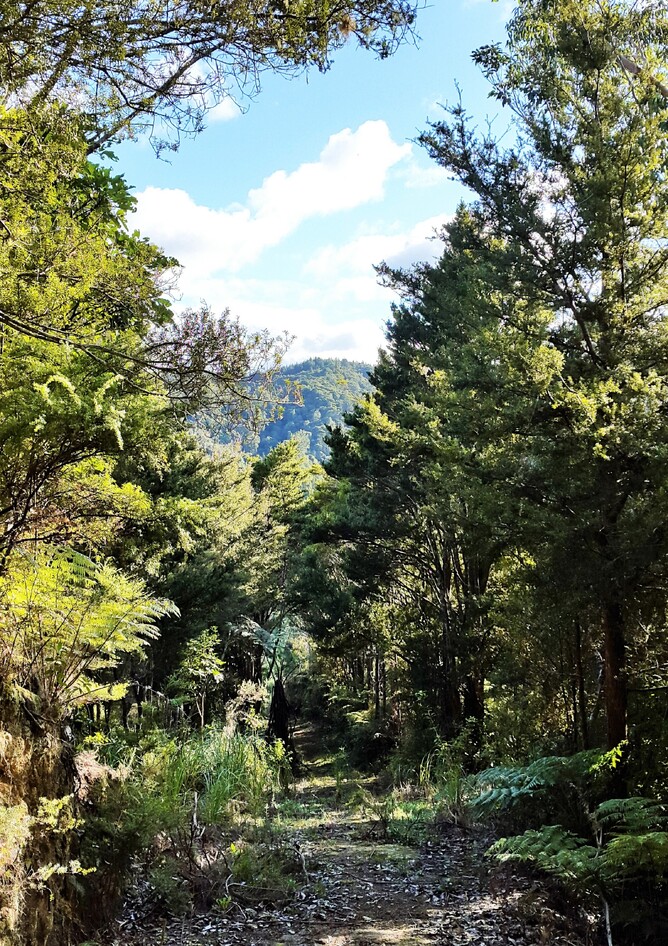 Just below our little rustic orchard (particularly rustic at the moment with the knee-length grass in desperate need of a trim!) a wide path opens up and beckons you to follow it's curving terrain. A work mission bought us out here on this day, a few patches of pesky gorse needed defensive action before the prickly pest gets too comfortable in an otherwise beautiful patch of regenerating native bush.