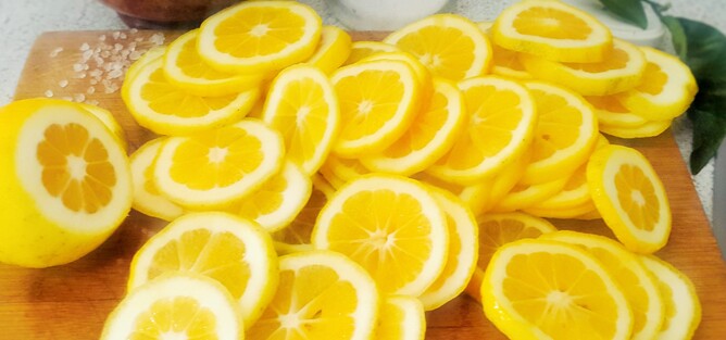 So armed with a sterilised jar and about eight lemons, I actually sliced mine getting rid of most of the pips along the way. I realise this isn't traditional as Italians do them whole but I love the convenience of having them in smaller pieces. A couple of tablespoons of salt in the bottom of the jar and my pile of sliced lemons scattered with salt I then layered and pressed them tightly into the jar. As directed, a couple more tbsp. of salt to finish and pressing down so the juice releases and covers all of the fruit. I sealed the top of the jar and they'll sit on the bench for a few days then in the fridge, not forgetting to give a little shake every few days.