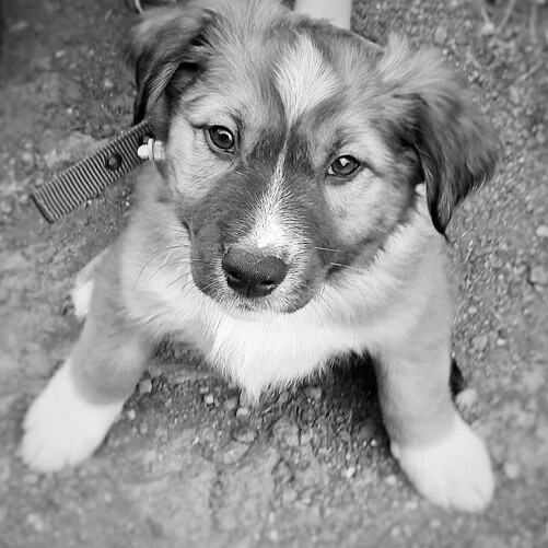 We chose little Ben, more formally known these days as Benson Chief, and I'm sure I don't have to explain why. His mum is a Border Collie but we we're not sure of his dad, although we're guessing it was a rendezvous with a German Shepard that resulted in the cute little litter. Ben came to us when he was 8 weeks old, a babe who needed love, play and training. The first few weeks were a total shock to the system. We were advised to have him inside at night for the first few months and while we didn't have a crate for him, we had a little spare room where we knew he'd be safe and warm. From day one his 'colourful' character shone through.