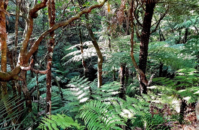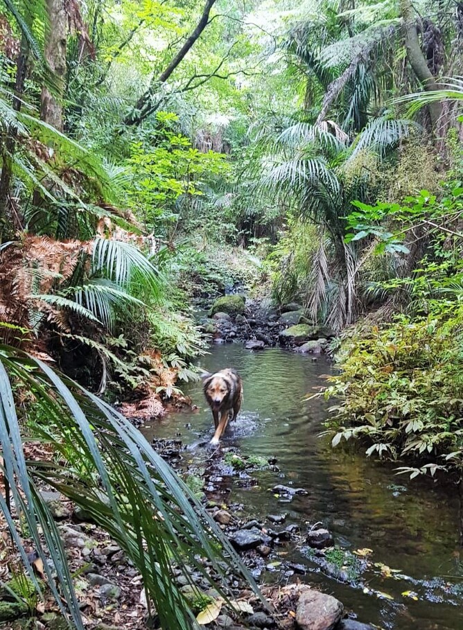 Breakfast was the obligatory fry-up and while Miss 15 was cool to hang with us for a night, she opted out of the second night. So before she departed, we went for a wander. A steep side of the property that we hadn't explored before, we were guided by flitting, chatty fantails and discovered some beautiful big natives. Heading back down, we took the winding walk along the stream back to camp.