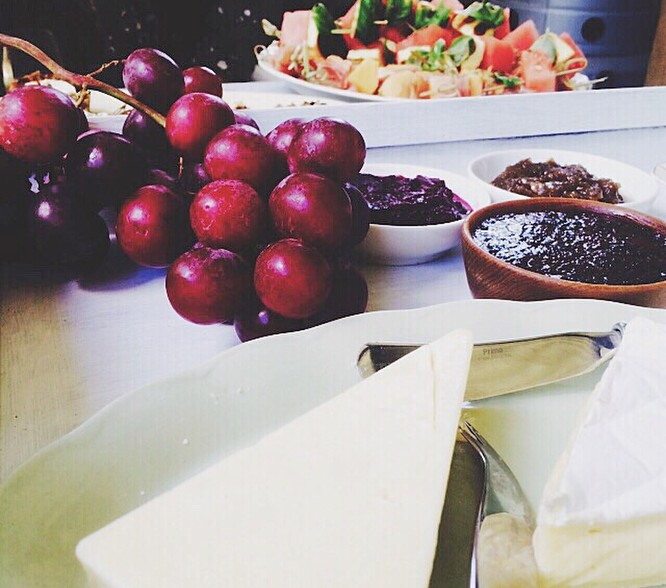 The first, late afternoon course was starring award-winning organic cheese from Northland company Grinning Gecko. Their creamy Brie and zesty 'Parihaka' was paired with our own Down the Road fig paste and two punchy condiments from Northland's Wild West Worcester; a beetroot relish and a pickled onion chutney. On skewers, chunks of grilled Grinning Gecko Haloumi partnered with juicy watermelon and a fresh basil leaf. And a nod to Italy on the table with proscuitto wrapped rock melon cubes. Finally, bite-sized quinoa tarts of sweet caramalised onions topped with goat feta and rosemary.