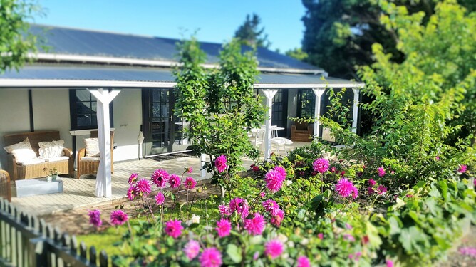The previous owners obviously had well established green thumbs and summer is when this becomes very apparent. Amongst the Roses and Hydrangeas, the warmer months welcome a brilliant display of deep pink Dahlias, I've never really been a fan of pink but these architectural star bursts have won me over. Completely non existent in winter, they emerge like summer showgirls, heads bobbing in the sun and their candy coloured sweetness very hard to ignore. It's a great example of mass planting and all we have to do is cull or reposition the odd multiplying tuber to avoid a total takeover.