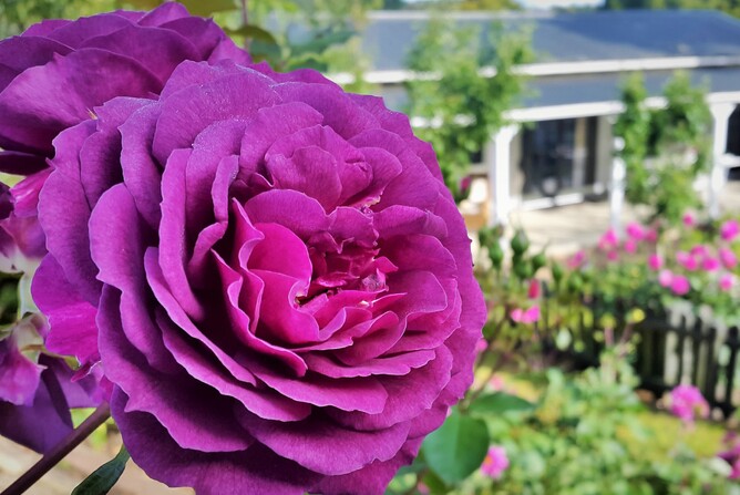 In that one weekend, from the boarders surrounding the cottages alone we literally removed a truckload of weeds, bright yellow daisies that had almost reached head height and many a stubborn and deep-set Arum Lilly. While previously presenting a pretty, rustic and rambling picture, once removed revealed well considered, carefully planned and beautiful cottage gardens. Many varieties of old fashioned roses dotted through, which I've since learnt from those more in the know than I, are prized, not only for their uniquely coloured blooms, but their deep, sensual perfume. With head bowed and eyes softly closed, (why is it that our natural reaction when smelling a flower is to close our eyes? Such a lovely natural preparation.) with nose delicately buried in their cool velvety petals, the fragrance instantly tweaks lips into a smile and transports mind and soul to a beautiful place.