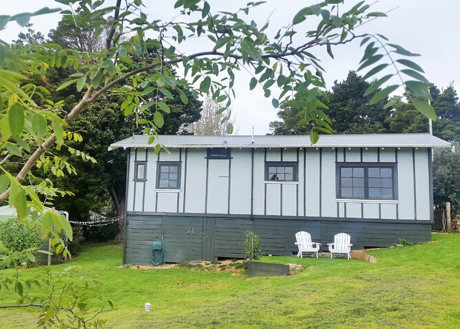Once the exteriors of both cottages had a quick makeover, the focus was firmly set on the Orchard Cottage interior and you can get the idea from the photos below of the previous look, colour scheme and detail that has since been replaced. The Cottage originally started life as the Whangarei Croquet Clubrooms and was transported to this site by the previous owners. Positioned perfectly to enjoy the view over the orchard, the valley beyond and to bask in the warm afternoon sun.